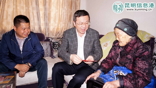 昆明信息港讯 通讯员李伟 林增 10月9日是一年一度的重阳节,因此整个10月也被官渡区定为了“敬老月”。今年敬老月,官渡区区级领导走访、慰问了全区90岁以上高龄老人,在重阳节到来之际,祝福他们健康长寿。