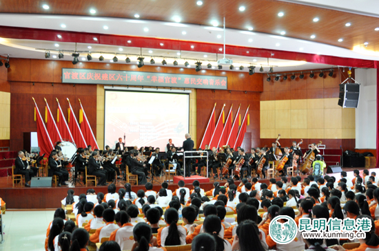 昆明信息港讯 记者龙泉积 10月11日,官渡区庆祝建区60周年“幸福官渡”交响音乐会走进官渡区小板桥中学,570名初三毕业生聆听了充满智慧和激昂的音乐演奏。据介绍,官渡区将开展以“魅力春城 幸福官渡”为主题的系列活动喜迎六十岁生日的到来。活动包含了、书画、摄影、文艺演出、展览展示、阅读演讲等,反映官渡六十年来经济发展、社会进步、文化建设、民生改善、生态建设、党的建设等方面取得的成就,充分展现官渡六十年来所发生的巨大变化。
