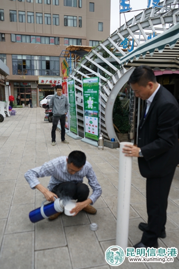 当天的交流活动上,科技志愿者还现场展示了创新成果——第三代环保礼炮,利用二氧化碳、催化剂、热水发射礼炮,得到了参会代表们的一致好评。