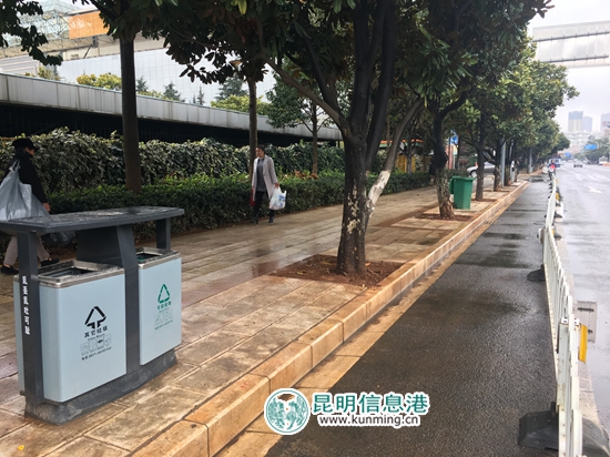 截止12月7日,人民东路、国贸路、广福路、春城路的果皮箱整治工作已全部结束,共拆除带广告位果皮箱345组,新装分类果皮箱组354组,移装果皮箱345组。