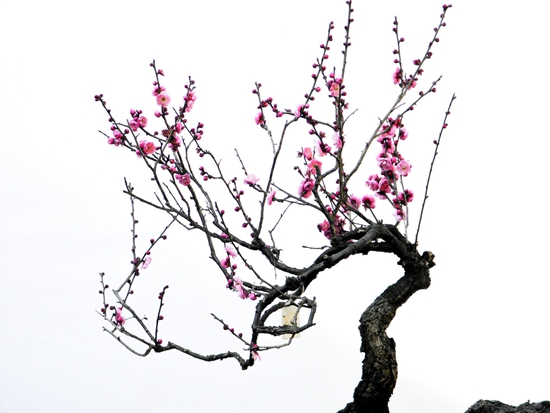 图片说明:通过镜头把梅画的形态展现出来,加之梅花后有白板作为背景,再利用光线和曝光度让图片看起来犹如画一般。