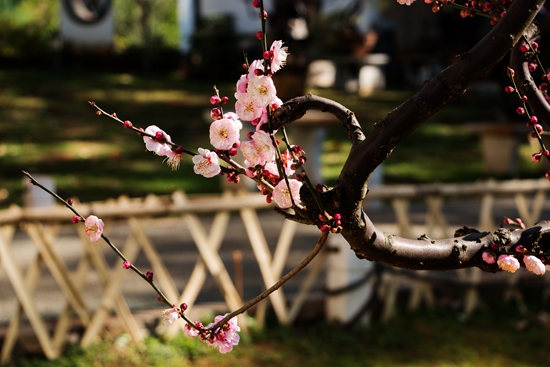 犹如少女纤细的柳腰,托起数枝绽放的红梅 ,鲜活生气艳园林,这是我在园中看到最美的造型。