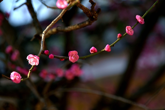 看到这枝红梅时,便让我不禁想起东坡先生的名句“年年芳信负红梅,江畔垂垂又欲开”。