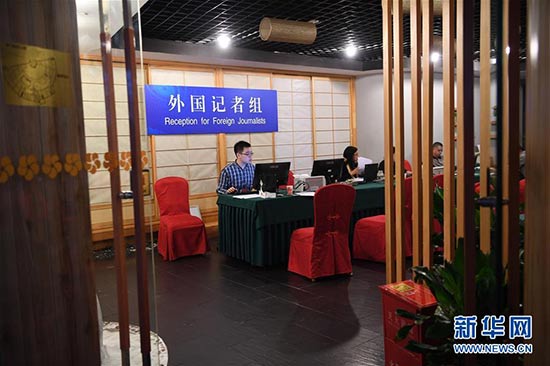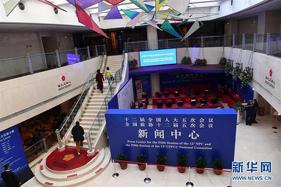 2月27日拍摄的全国两会新闻中心。当日,设在北京梅地亚中心的全国两会新闻中心正式开展工作。第十二届全国人民代表大会第五次会议和政协第十二届全国委员会第五次会议,将分别于2017年3月5日和3月3日在北京开幕。新华社记者 金良快 摄