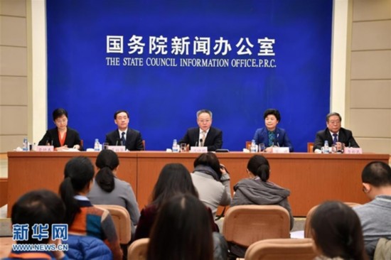 2月7日,国务院新闻办公室在北京举行国务院政策例行吹风会,发展改革委、教育部、财政部、卫生计生委有关负责同志和国务院新闻办新闻发言人出席,介绍2016年人大代表建议和政协委员提案办理相关情况,并答记者问。新华社记者 李鑫 摄