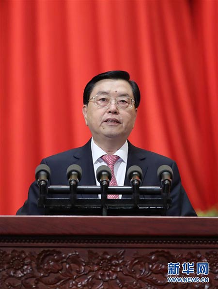 3月8日,十二届全国人大五次会议在北京人民大会堂举行第二次全体会议。全国人大常委会委员长张德江作全国人民代表大会常务委员会工作报告。新华社记者张领摄