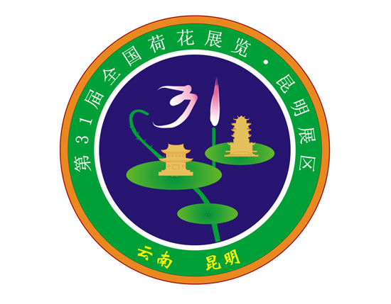 以荷花的花朵侧视形似数字“31”寓意第31届荷花展,荷花整体上又如点亮的灯盏,花朵如火炬火苗,而荷叶如托,托住如灯笼般发光的“岳阳楼”与“黄鹤楼”,暗示了中国历史文化名楼参与花展,外围围绕文字点明必要的标志元素。