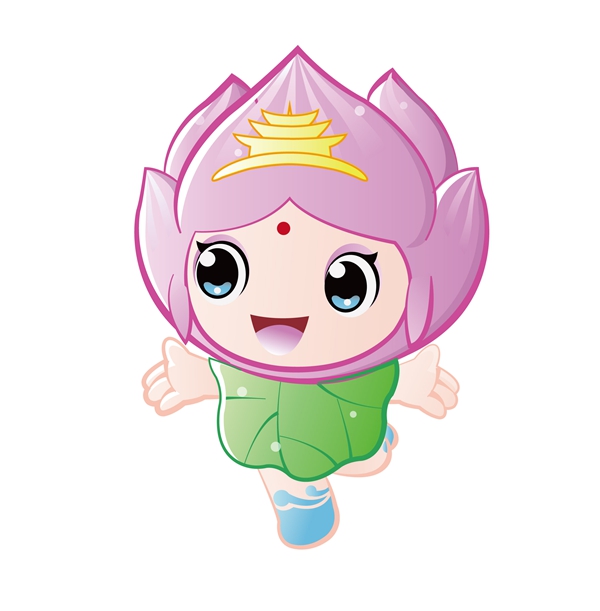 结合两者因素,荷宝设计成是一个秀气典雅的女孩子,荷宝整体设计围绕着荷花的整体形象。头部是荷花,衣服部分是荷叶,