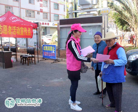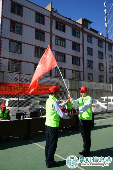 当天上午九点,举行了志愿服务队授旗仪式,志愿者们举起右手宣誓:在昆明市争创全国文明城市之际,积极参与环境整治提升,宣传、教育、劝导不文明行为,以实际行动为美丽春城增姿添彩。