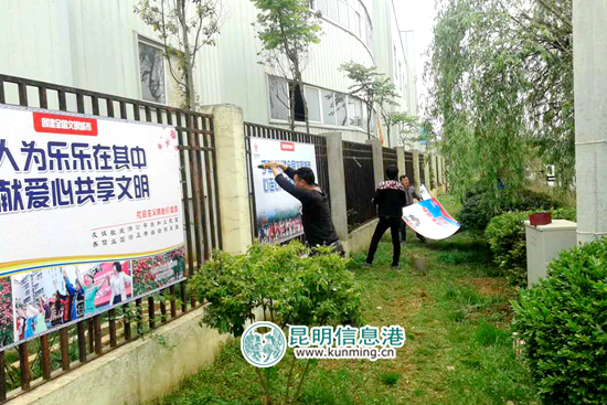 4月16日,海子社区干部职工分别在海子公路沿线恒大饲料路段及旧村路段两侧醒目位置,整齐悬挂创建文明城市户外大型宣传展板和喷绘。海子公路是海子社区的主干道,过往行人和车辆众多,打造“文明公路”,将大幅提升社区文明创建的宣传效果。