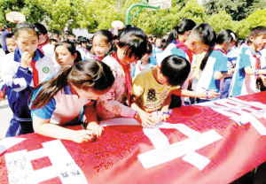 昆明信息港·昆明日报 记者吴洁 通讯员李丽红 日前,昆明经开三小600余名师生庄严宣誓:“小手牵大手,共创文明城;践行社会主义核心价值观,同圆中华民族伟大中国梦”。