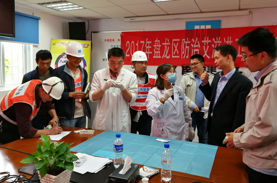 昆明信息港讯 为进一步增强建筑工地工人对艾滋病危害的认识,正确掌握艾滋病预防知识,倡导健康、文明、科学的生活方式,根据第三轮全国艾滋病综合防治示范区创建工作要求,盘龙区疾病预防控制中心健康教育科、艾滋病防治科联合住建局于4月13日下午2点在恒隆广场昆明总承包工程建筑工地举办一次以“2017年盘龙区防治艾滋进工地”为主题的艾滋病宣传活动。