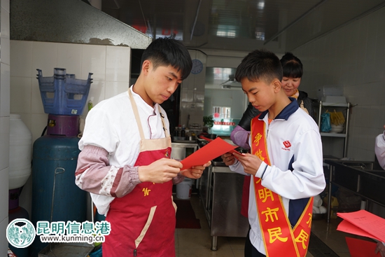倡议活动结束后,学校高年级学生在老师的带领下,走出校园,来到街头,沿街向市民们宣讲创城的意义,孩子们走进附近商铺,向店主和经营者发放了1000余份倡议书。