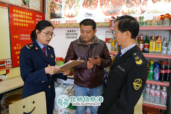 昆明信息港讯 通讯员夏雯 苏文忠 4月22日,经群众投诉,官渡区市场监督管理局对昆明火车站周边一家无照经营的餐饮店进行检查,责令店主停业整顿。