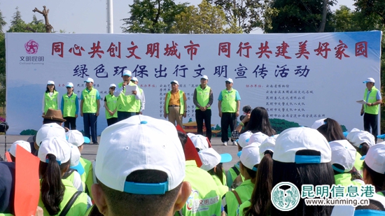 共青团官渡区委书记施飞介绍:今天在这里举行绿色环保出行、文明宣传的主题活动,主要是想通过骑行的方式呼吁广大市民朋友在昆明市创建全国文明城市的关键时期,在日常的生活过程当中,尽量选择公交出行、共享单车出行,尽可能的减少城市的交通压力,为文明城市的创建贡献出自己的一份力量。