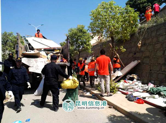 昆明信息港讯 通讯员冯靖凯 5月9日,昆明经开区阿拉街道工作人员在检查道路环境卫生时,发现贵昆路、昆石路两侧多处堆放了大量的建筑垃圾和生活垃圾,严重影响了辖区的市容市貌,阿拉街道综合行政执法大队组织执法人员、清洁工作人员进行整顿清除,有效改善了贵昆路、昆石路的环境卫生面貌。