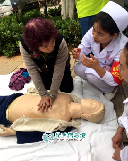 今年5.12护士节活动上午各医疗机构在自己所在社区开展了义诊、宣传创建全国文明城市活动。经开医院把CPR(心肺复苏操作流程)搬到活动现场,让广大群众在家门口就能学会急救知识,中医三伏贴、免费测血糖等也都是最受群众欢迎的活动,
