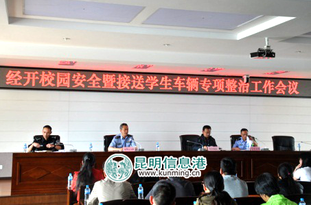 昆明信息港讯 通讯员冯靖凯 5月15日,昆明经开区公安分局结合创建全国文明城市活动的需要,联合区社会事业局、街道办、交警大队召开全区校园安全暨接送学生车辆专项整治工作会议。