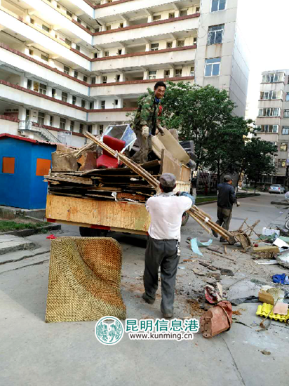 昆明信息港讯 通讯员冯靖凯 近日,昆明经开区阿拉街道联合昆船社区昆船公司相关部门在辖区内开展清理杂物行动。行动前期,昆船社区在各个居民院张贴通知,要求住户在规定时限内清理门前和楼道内的杂物。对住户未清理及弃用的杂物,街道和社区志愿者进行了集中清理。
