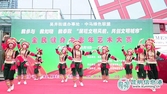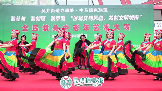 昆明信息港讯 通讯员李伟 杨富洪 5月16日,官渡区吴井街道举办了“我参与、我知晓、我奉献、展现文明风貌、共创文明城市”为主题的中老年艺术大赛。
