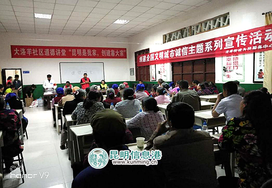 昆明信息港讯 通讯员冯靖凯 为深入推进全国文明城市创建工作,引导社区干部、群众以诚信待人,5月19日,昆明经开区洛羊街道大洛羊社区以“诚信”为主题的道德讲堂在社区会议室举行。