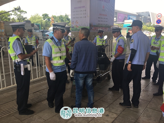 此次整治分为四组,分别针对南部客运站站前广场及周边的商博路、彩云北路、商城大道、怡安路等主次干道的非法揽客、非法营运、非法改装车辆、车辆乱停乱放等违法违规行为进行清理整治。经过一下午的清理整顿,共传唤审查非法揽客、拉客人员13人,清理占道经营10余起,驱离占道非机动车21辆,排查涉嫌非法营运车辆31辆,查扣非法改装车辆1辆,查扣非法营运非机动车11辆。城管规范共享单车停放10余辆,驱离流浪乞讨人员2人,配合交警清理乱停乱放10余起。
