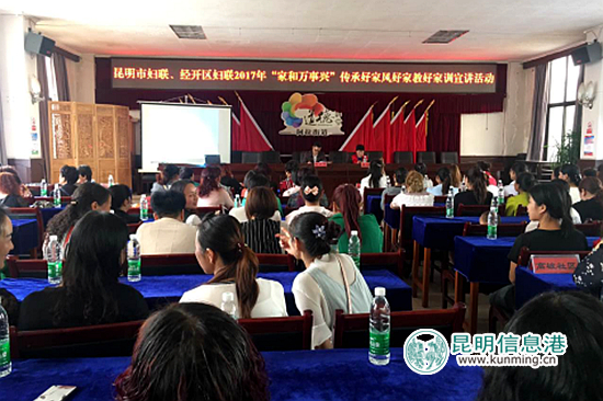 昆明信息港讯 通讯员冯靖凯 5月23日, 昆明市妇联、昆明经开区妇联举办的“2017年传承好家风好家教好家训”宣讲活动在阿拉街道举行。会议邀请了昆明经开区五好文明家庭代表陈晓欧、昆明学院党委研究老师张春梅、昆明家教研究副会长二级心理师梁永红老师及各社区妇联代表参加。
