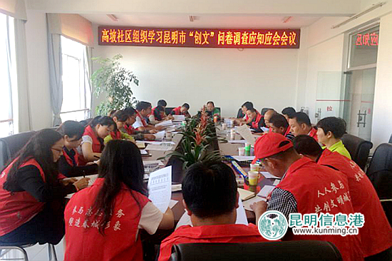 昆明信息港讯 通讯员冯靖凯 近日,昆明经开区阿拉街道高坡社区组织社区“两委一监督”成员及小组干部对创建全国文明城市问卷调查应知应会内容进行集中学习。