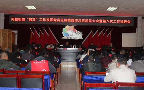 会上,阿拉街道对近期街道“创文”工作进行回顾和部署,同时强调,“两学一做”基础在学关键在做,结合中央、省、市、区各级推进“两学一做”常态化制度化会议精神,党员干部在创建全国文明城市工作中要勇于担当,率先垂范,充分发挥先锋模范带头作用。