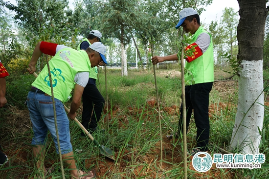 昆明信息港讯 通讯员熊艳琳 为提高全民植绿护绿意识,积极推进全国文明城市创建,6月2日,官渡区在官渡街道海东社区举行“同享碧水蓝天、共建生态家园”大型义务植树志愿服务活动,来自官渡区的300多名志愿者一起参加义务植树活动。