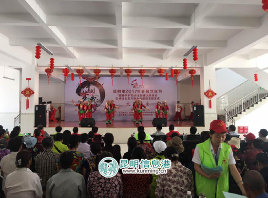 本次活动以“昆明市2017年春城文化节‘德耀中华·中国梦·我的梦’经开区创建文明城市、弘扬社会主义核心价值观”为宣传主题。演出现场,文化馆馆办合唱团及馆办舞蹈团、高坡社区文艺演出队伍载歌载舞,为社区群众呈现了一个个精彩的节目,赢得了观众热烈的掌声。同时,文化馆及高坡社区文化志愿者积极进行各项服务工作,摆放演出舞美道具,维护现场秩序,发放饮用水等。