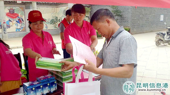昆明信息港讯 通讯员毕丽亚 李树荣 6月10日,昆明经开区阿拉街道高坡社区妇联组织巾帼志愿者在社区民族广场开展志愿宣传服务活动。