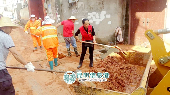 昆明信息港讯 通讯员肖莹 6月12日,傍晚的一场大雨导致昆明经开区阿拉街道阿拉社区公家小组正在施工的204号路被30厘米厚的稀泥覆盖,给周围的商户和居民造成极大不便。为了解决该问题,公家小组支部组织志愿服务小组赶赴现场,与施工方负责人共同商讨解决办法。与此同时,志愿服务人员分布在不同位置,有的清除淤泥和垃圾,有的搀扶老人,有的背学生过路,经过志愿者们的努力,204号路变得干净整洁。