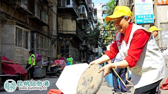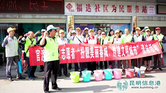 昆明信息港讯 通讯员李伟 杨富洪 6月8日,官渡区老干局组织的全区“银色志愿者”队伍,来到挂钩联系社区福达社区,开展了一场实实在在的创文志愿者活动。