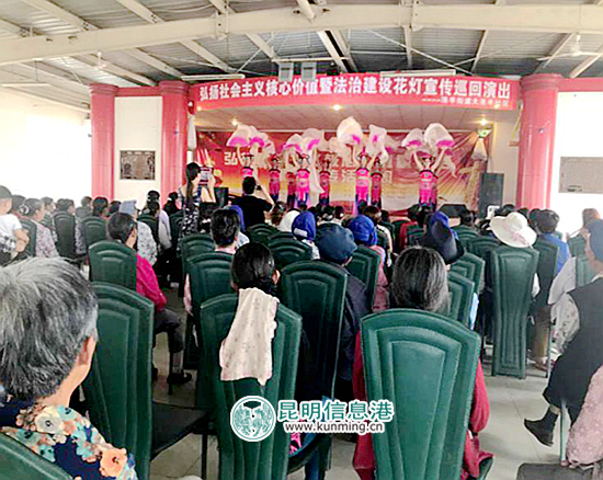 昆明信息港讯 通讯员毕惠凤 为加强昆明经开区洛羊街道法治环境建设,大力弘扬法治精神,构建和谐法治社会,着力推进洛羊街道全国文明城市创建工作。6月19日,洛羊街道在大洛羊社区开展了社会主义核心价值观暨法治进社区宣传演出。
