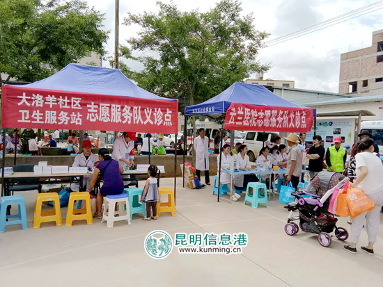 昆明信息港讯 通讯员付娇 为进一步推进创建全国文明城市工作,6月24日,昆明经开区社会事业局组织区医疗卫生创建全国文明城市志愿者,进社区开展义诊活动。区社会事业局、经开区人民医院、普瑞眼科、昆明市第二人民医院、大洛羊为民服务站等单位的志愿者服务队都参与到了义诊活动中来,吸引了众多社区居民前来咨询。