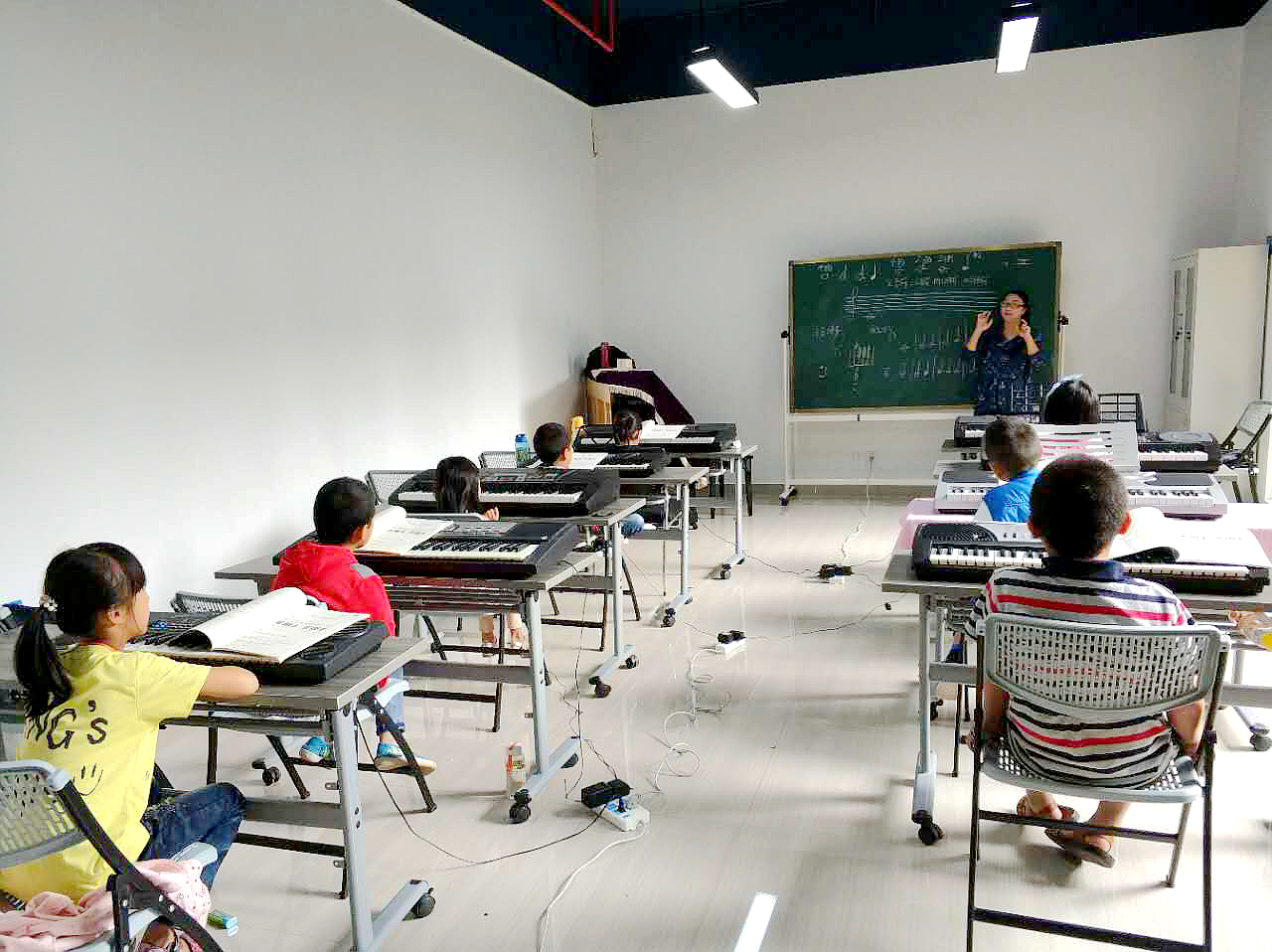 培训中,由于小朋友们刚开始接触电子琴,老师从零基础开始教学,帮助小学员们锻炼节奏感,为以后的电子琴练习打下基础,让他们感受到音乐的乐趣,从而喜欢并坚持练习电子琴。经过老师的悉心教导,小朋友们慢慢学会如何使用电子琴,并可以独自完成一些简单乐曲的弹奏。