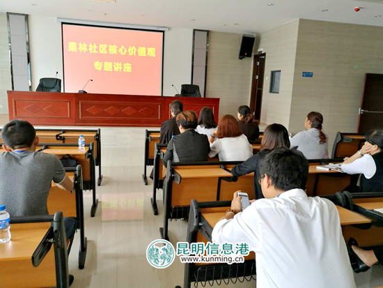 昆明信息港讯 通讯员李欣然 为提高社区工作人员与辖区居民对培育和践行社会主义核心价值观重要意义的认识,7月20日,昆明经开区洛羊街道果林社区综合文化服务中心组织社区工作人员与辖区群众,集中学习社会主义核心价值观的内涵意义等重要内容。
