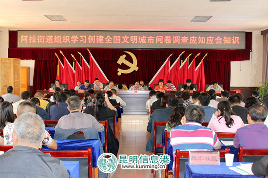 昆明信息港讯 通讯员仁丽洁 张卫能 为进一步加强创建全国文明城市问卷调查应知应会内容宣传工作,提升“创文”知晓率、支持率、参与率和满意率,7月24日,昆明经开区阿拉街道组织学习“创建全国文明城市问卷调查应知应会内容参考资料”。