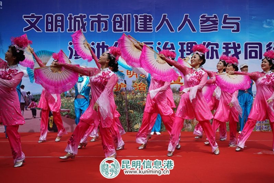 昆明信息港讯 通讯员熊艳琳 林增 近日,由官渡区人民政府主办、官渡区水务局承办的2017年滇池保护治理宣传巡演下基层活动走进东华路社区,巡演活动邀请昆明滇池阳光艺术团,以围绕“文明城市创建人人参与、滇池保护治理你我同行”主题精心编排的歌舞、小品、花灯等通俗易懂、贴近生活的节目,吸引了东华路社区群众百余人,这是官渡区2017年滇池保护治理宣传月系列活动中宣传进社区接地气的第二场演出活动。