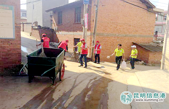 昆明信息港讯 7月29日,昆明经开区机关一支部党员以志愿者身份来到联系小组阿拉社区白水塘小组,与小组两委、社区工作人员、志愿者一道对白水塘农贸市场、辖区道路进行“创文”工作检查,要求各商铺、企业做好“门前三包”,并对农贸市场、小组道路的环境卫生进行清理整治。