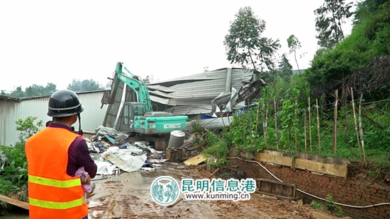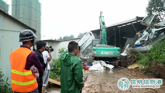 昆明信息港讯 通讯员李伟 杨富洪 进入7、8月,连续的大雨、暴雨让全市的一些近山、靠山的地段,出现了山体滑坡,严重地影响群众的生命财产安全。8月1日,官渡区金马街道对辖区地质灾害隐患点的部分建筑进行拆除,确保周边居民生命财产安全。