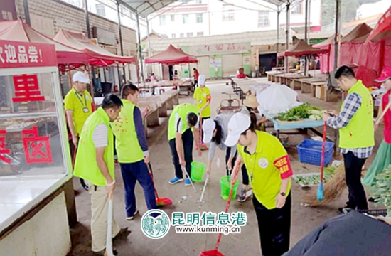 昆明信息港讯 通讯员赵翠兰 8月5日,经开区经济发展局和大洛羊社区志愿者在社区的农贸市场开展了一场清洁整治活动。自“创文”以来,大洛羊社区一直保持“人人参与,人人共享”的创建理念,切切实实为社区居民办实事,谋福利,将文明创建活动落到居民的寻常生活,让居民享受实惠,提高幸福生活指数。