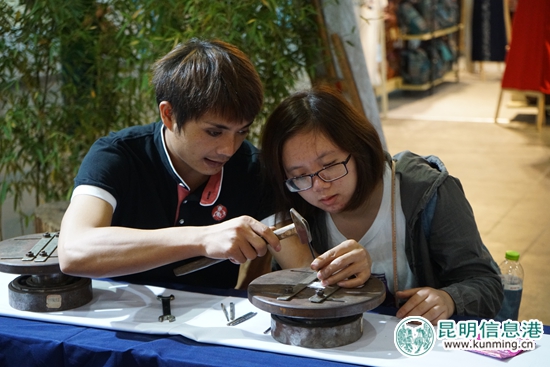 此次展览官渡区共有19企业参展,以非物质文化遗产技艺打头阵,有国家级非物质文化遗产乌铜走银,展现精美的铜器工艺与创意;云子围棋与滇派内画以独特的魅力吸引了市民的围观;二战“驼飞”为主题的抗战纪念品与创意品,向人们再现抗争峥嵘岁月;而官渡吹糖人、草编、捏面人、糖画等传统手工技艺,也唤起了老昆明人儿时的记忆。