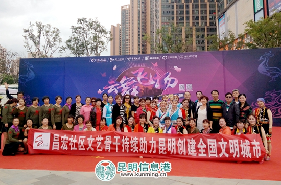 昆明信息港讯 通讯员牛娜 8月13日,由云南广播电视台、都市频道、公共频道和中国电信云南分公司共同举办的“创建同心 文明同行 云舞飞扬”云南首届广场舞大赛在广福路海伦国际广场拉开帷幕。阿拉街道昌宏社区组织11支文艺队报名参加。比赛现场,选手们精神饱满、神采飞扬,伴随着优美的旋律翩翩起舞,赢得现场观众的阵阵掌声。