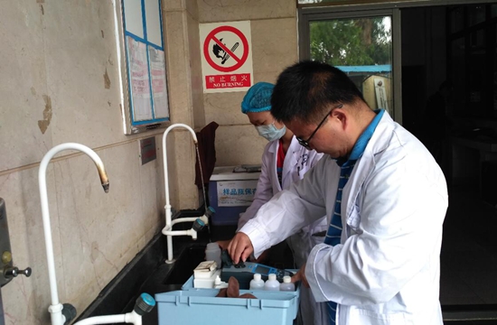 三、加强与供水部门的沟通与联系,在昆明通用水务自来水公司相关工作人员的协助下,对城区第二、第四、第七自来水厂进行出厂水的采集,为进一步掌握辖区市政供水卫生状况提供依据。