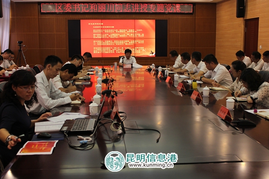 昆明信息港讯 通讯员王丽华 郭武辉 8月16日,官渡区区委书记和丽川为区委办、区委政研室全体干部职工讲授主题为《在“两学一做”中当好先锋和表率》的专题党课。