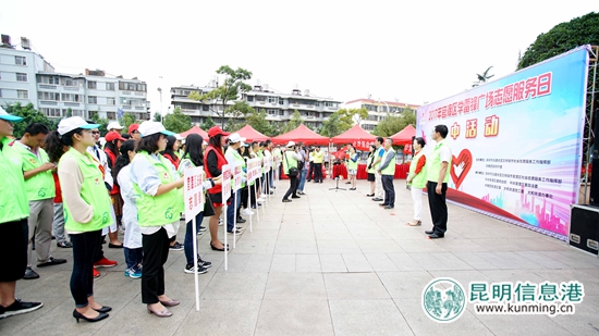 昆明信息港讯 通讯员李伟 杨富洪 广泛动员全参与、志愿服务常态化。9月9日,官渡区组织社区志愿者,联合公共单位的志愿者在百富琪雷锋广场,开展了“志愿服务日”集中活动。