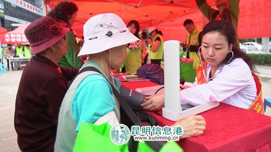 在百富琪广场,志愿者们为过往群众量血压、测血糖、补鞋、缝纽扣、理发,用真爱铸就社区,用真情温暖邻里,推动了辖区城市文明建设。据了解,官渡区组建了各类志愿服务团体组织600余个,招募志愿者18余万人,以社区、公共文化设施、景区景点等为重点打造了志愿服务站点近千个,为全市创建全国文明城市做出了积极努力,赢得了群众的好评。