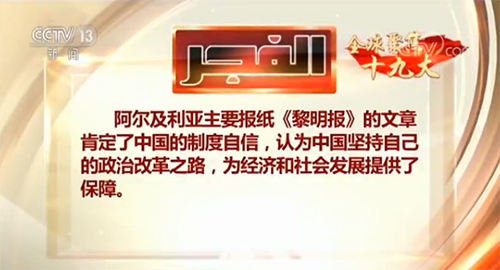 阿尔及利亚主要报纸《黎明报》的文章肯定了中国的制度自信,认为中国坚持自己的政治改革之路,为经济和社会发展提供了保障。